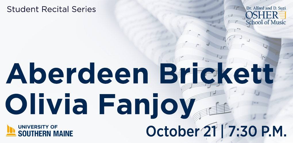 The Osher School of Music is pleased to present Aberdeen Brickett and Olivia Fanjoy in their junior recital. Aberdeen is the student of Malinda Haslett and Scott Wheatley. Olivia is the student of Thomas Parchman.