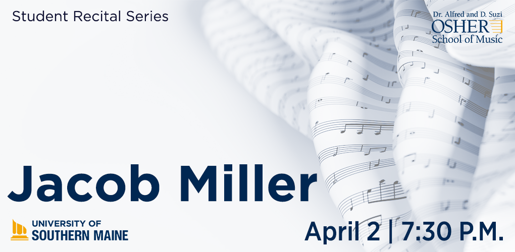 The Osher School of Music is pleased to present Jacob Miller in his senior composition recital. Jacob is the student of Hans Indigo Spencer and Mary Bastoni.