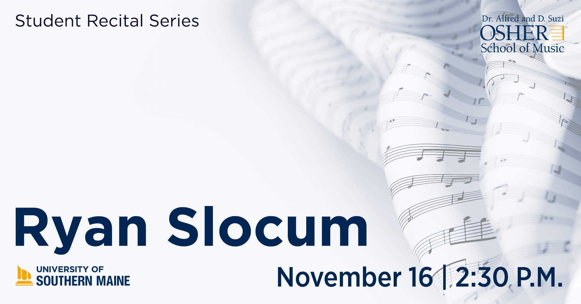 The Osher School of Music is pleased to present Ryan Slocum, organ, in his senior recital. Ryan is the student of Hentus van Rooyen.