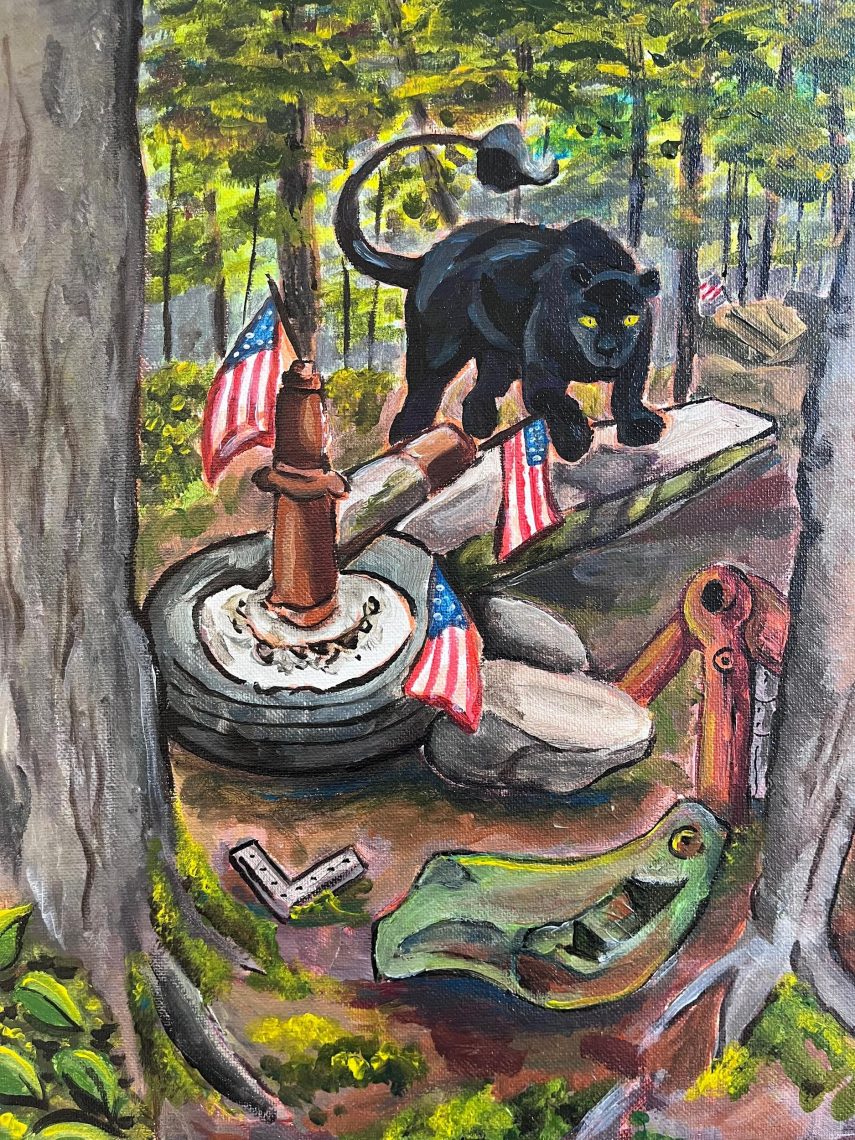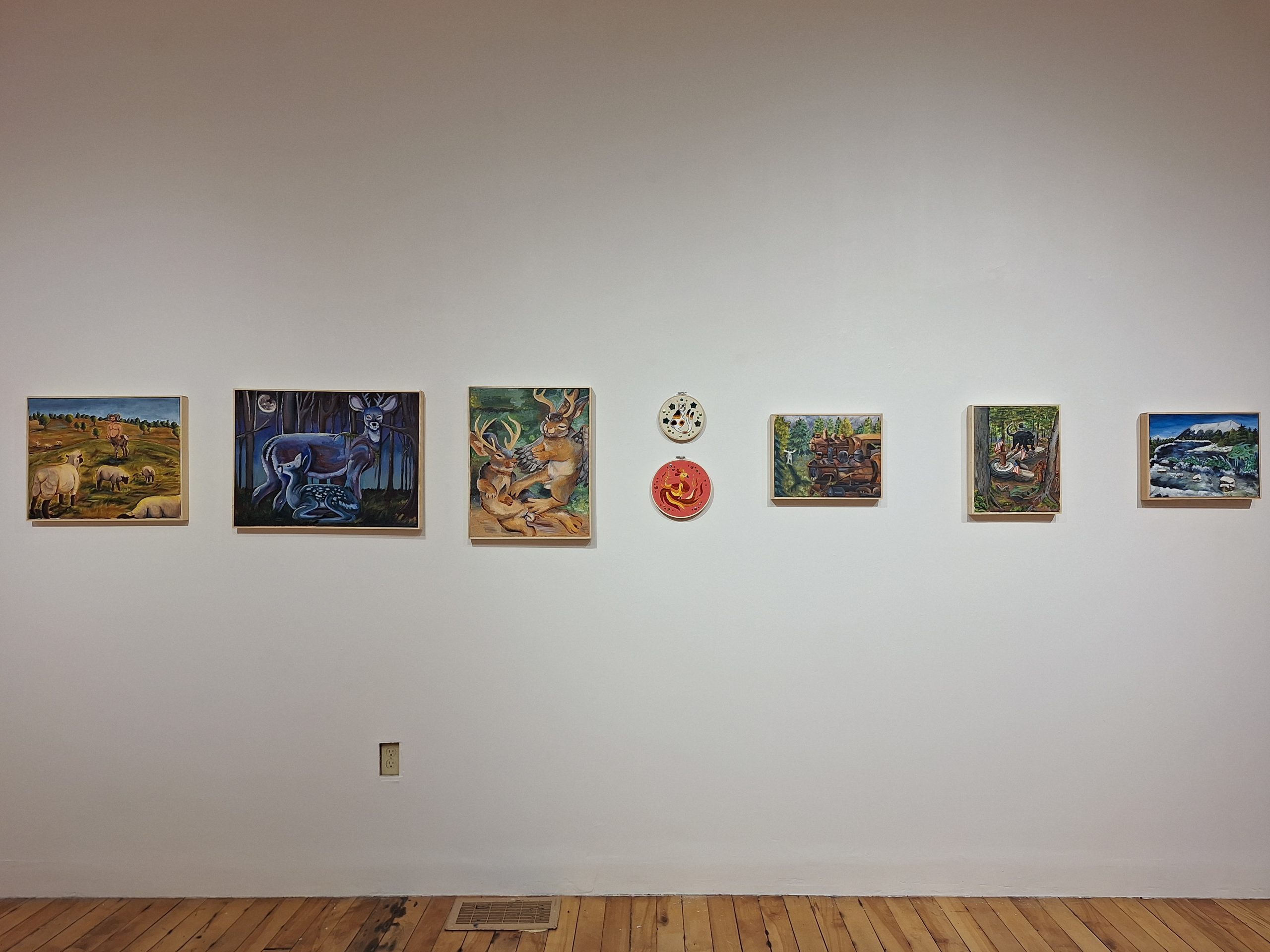 Growing up in Maine has had a fundamental impact on who I am as a person and an artist. As a child my family was always extremely involved in exploring the natural world, doing activities that often left us in the sparsely populated areas of northern Maine, or simply in the middle of the woods somewhere. As an only child with a very active imagination, I pictured fantastical creatures lurking among the trees or create elaborate stories in my mind to make things more exciting. Today, I continue to be inspired by mythology, the way that stories are spread from person to person until they take on a fantastical life of their own. My love for fantasy and childhood experiences in Maine has fostered my interest in local folklore. In several of my paintings I pull from these feelings of nostalgic imagination, of the places I’ve visited in the Allagash and Northwestern Maine, combined with Native folklore and stories from Maine logger men, to create a story that is uniquely my own.
