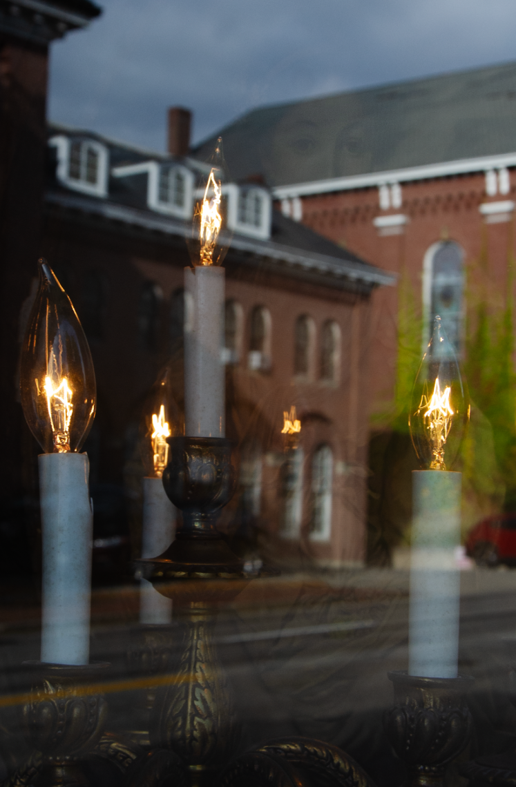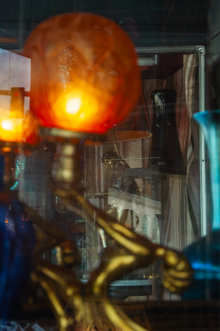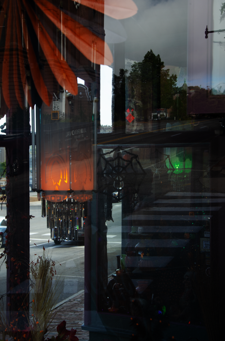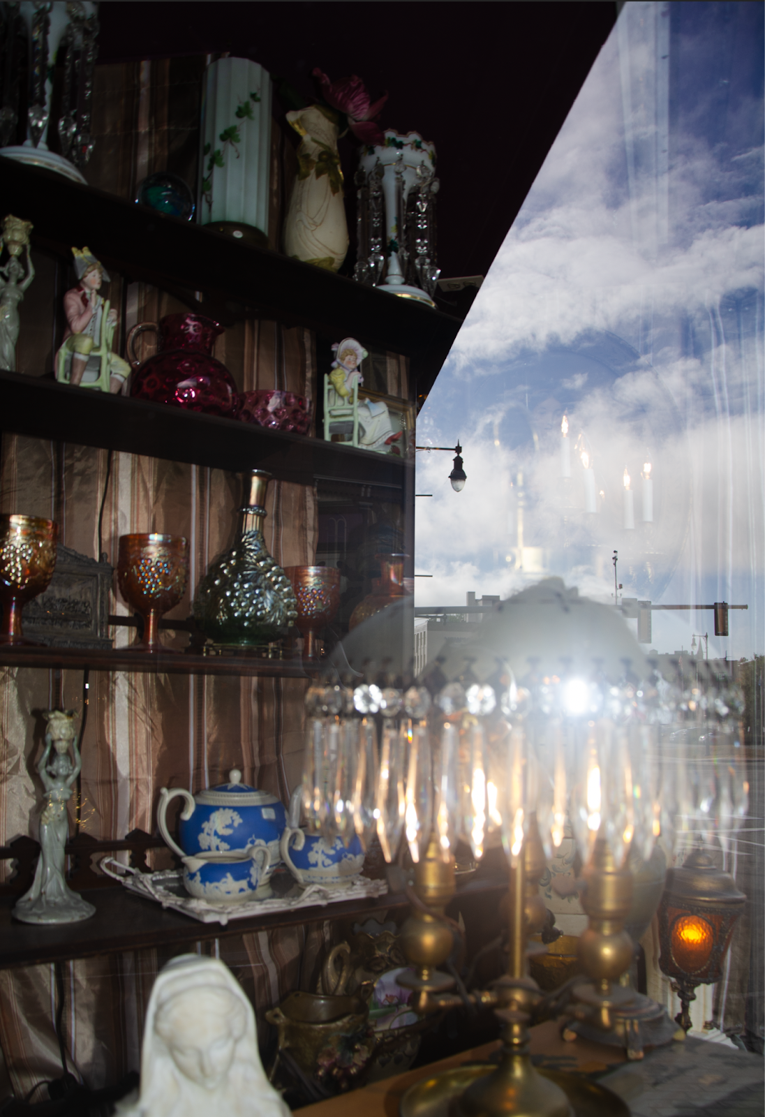 My current body of work is comprised of in-camera collages made from reflective surfaces and shadows. The primary inspiration and source of this line of work is the display window of a long-running and beloved vintage shop in Auburn, Maine. I focus on the objects that make up the display window, objects that are overlooked time again and time again by passers by. The combination of vintage objects along with the way that the light plays and dances on the reflective surfaces instills a quiet nostalgia.