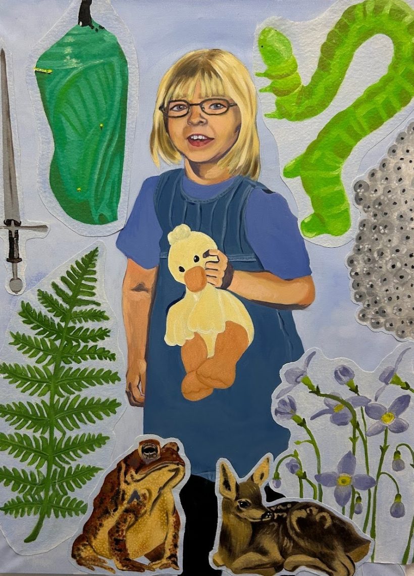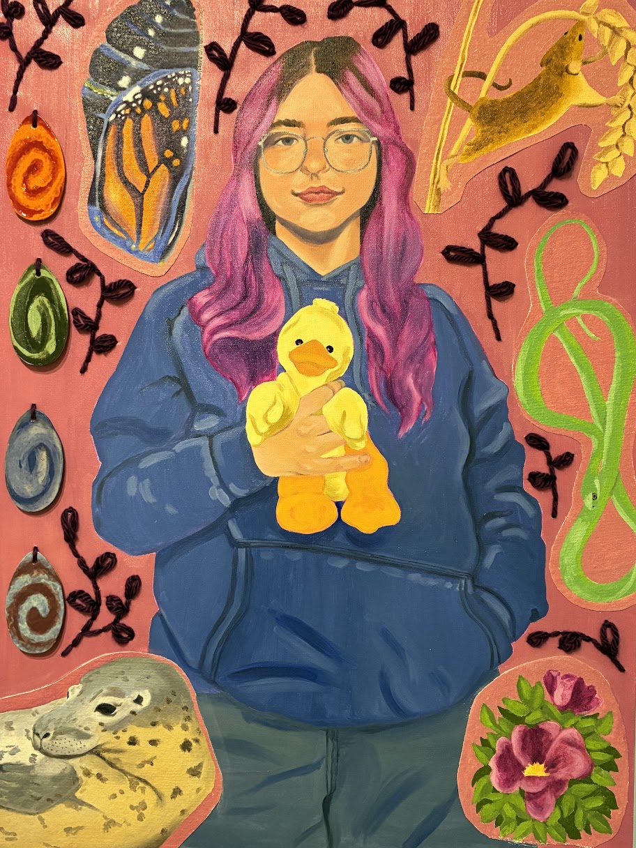 Alyssa McNally is an artist born and raised in Maine. Growing up surrounded by nature and exploring remote areas has fostered her interest in nature and animals. Her current artwork focuses on themes of fantasy and mythology, influenced by a love for fictional stories from a young age. Alyssa combines elements of her Maine roots with her love for mythical creatures to create pieces that are narrative and representative of her life experiences. She has interned in both curatorial and graphic design positions and is currently completing her undergraduate studies at the University of Southern Maine with a Bachelor of Fine Art degree in Studio Art.
