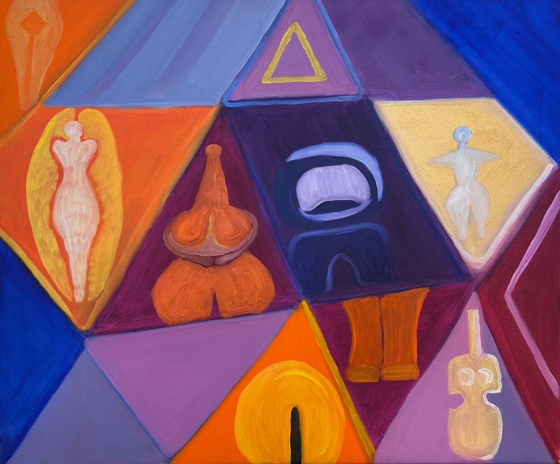 The theme of the paintings in this show is resistance through culture. My paintings convey the rich folklore and folk culture of Lithuania at a time when this cultural history, like that of Ukraine, is threatened with erasure by a hostile foreign power. It is against this backdrop that my work becomes a visual and political statement on how small nations have as much right to exist in peace and freedom as larger ones.