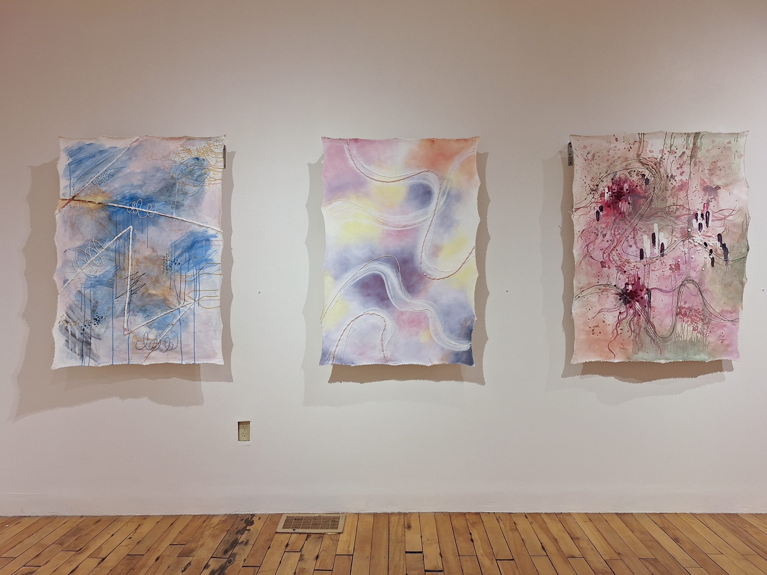 Hailey Stover is an artist based in Upstate, New York. Working across painting, drawing, and textiles, she experiments with a range of media to create layered, tactile works that explore grief, nostalgia, and memory through abstraction. Stover is currently a senior at the University of Southern Maine, pursuing a BFA in Studio Art with a concentration in painting and drawing. Her work has been exhibited in several student juried shows, including the Hyde Museum in Glens Falls, NY, during her freshman and senior years of high school, and at Cazenovia College during her freshman year.
