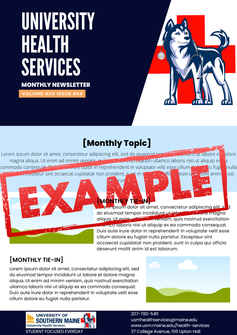 Each month, UHS sends out a newsletter to all current students and employees via listserv email. These communications contain information about monthly initiatives, support services offered on campus, upcoming health events, offer health tips and tricks, highlight clinical services, and introduce the community to the clinical and administrative team.