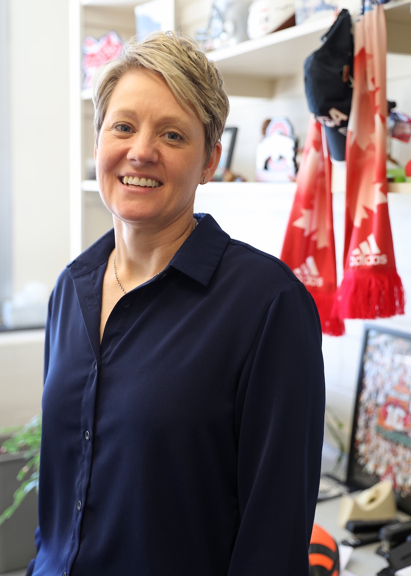 Those are the opening lines of USM’s new alma mater, “Southern Maine is Coming Home” by Dr. Heidi Parker. Lyrics are not her usual area of expertise. She teaches Sport Management and chairs the Business Administration program.