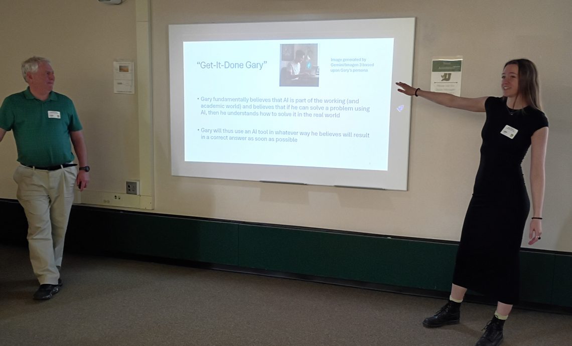 A University of Southern Maine (USM) team presented their innovative research at the Consortium for Computing Sciences in Colleges Northeastern Conference (CCSCNE). The presentation, titled “Large Language Models and Introductory Lab Exercises: Susceptibility, Resistance, and Potential”, opened the conference and sparked significant discussion among attendees.