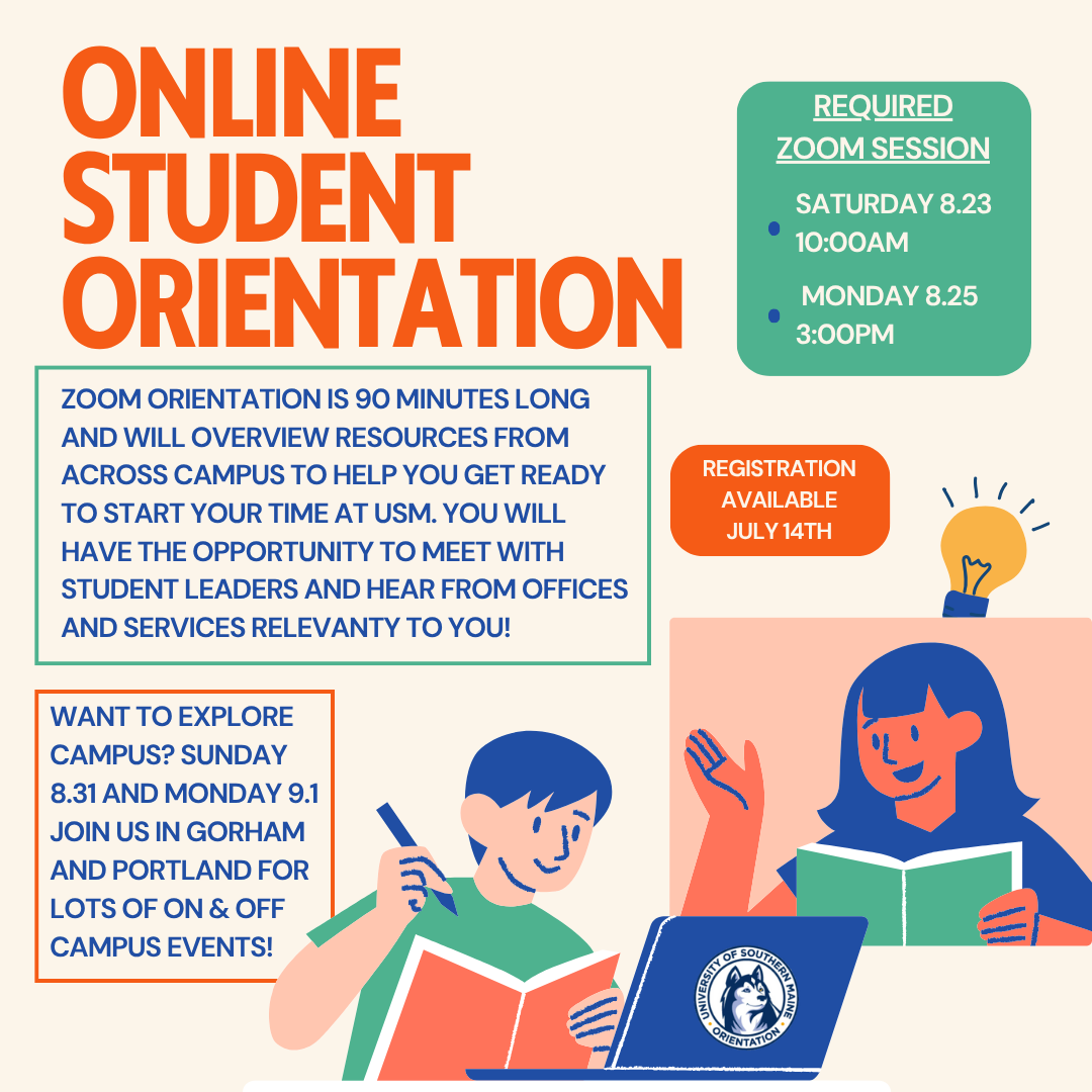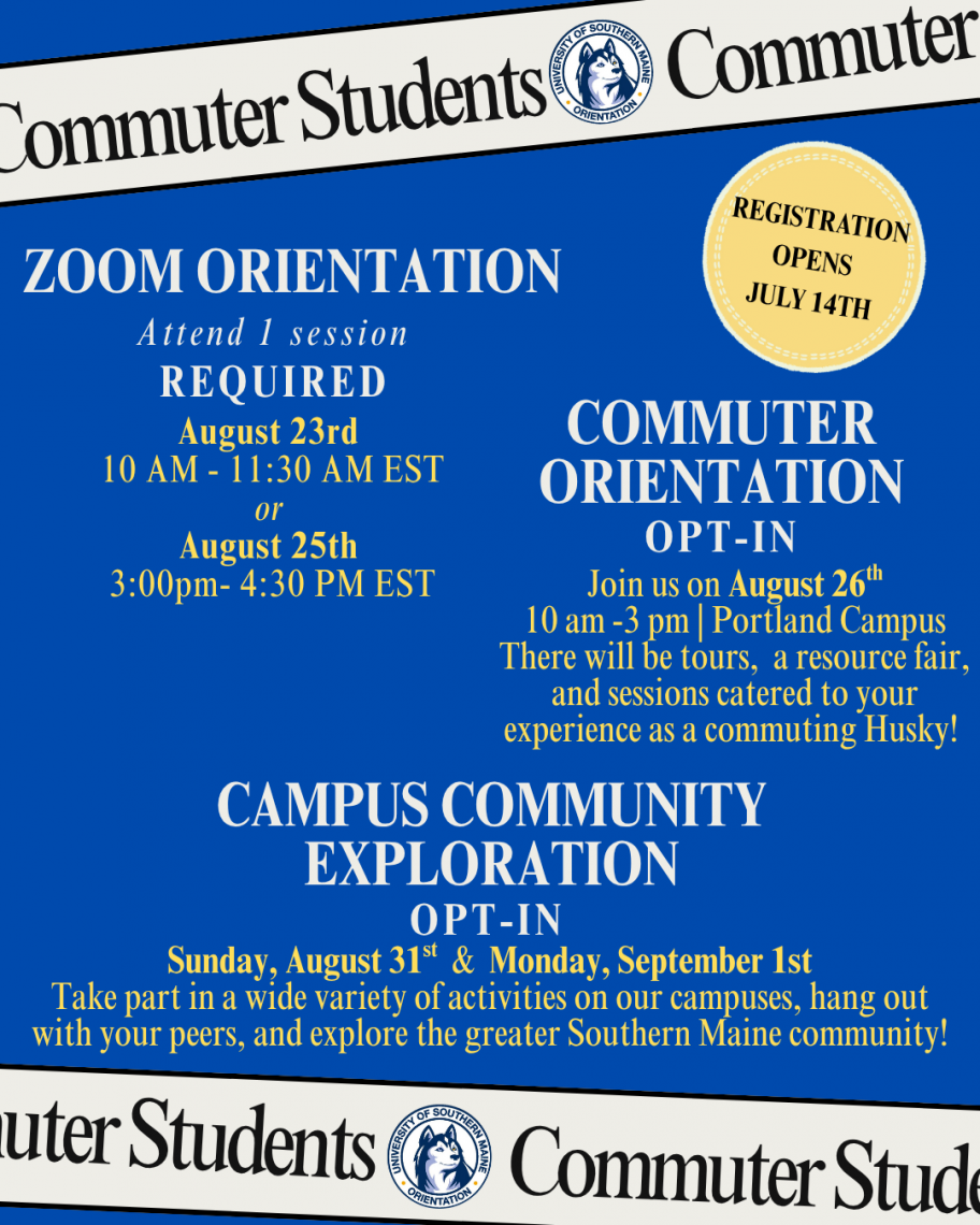 Have questions? Contact us via email usm.orientation@maine.edu or call 207-780-4604*